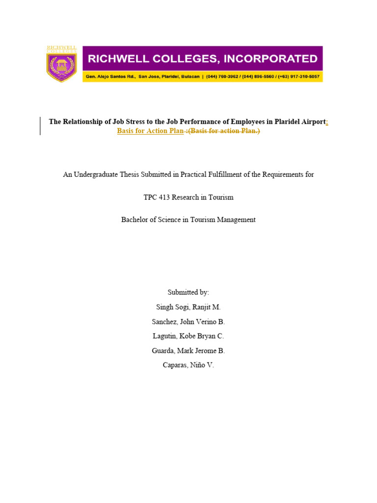 We are students from Richwell Colleges Incorporated, pursuing Bachelor of Science in tourism