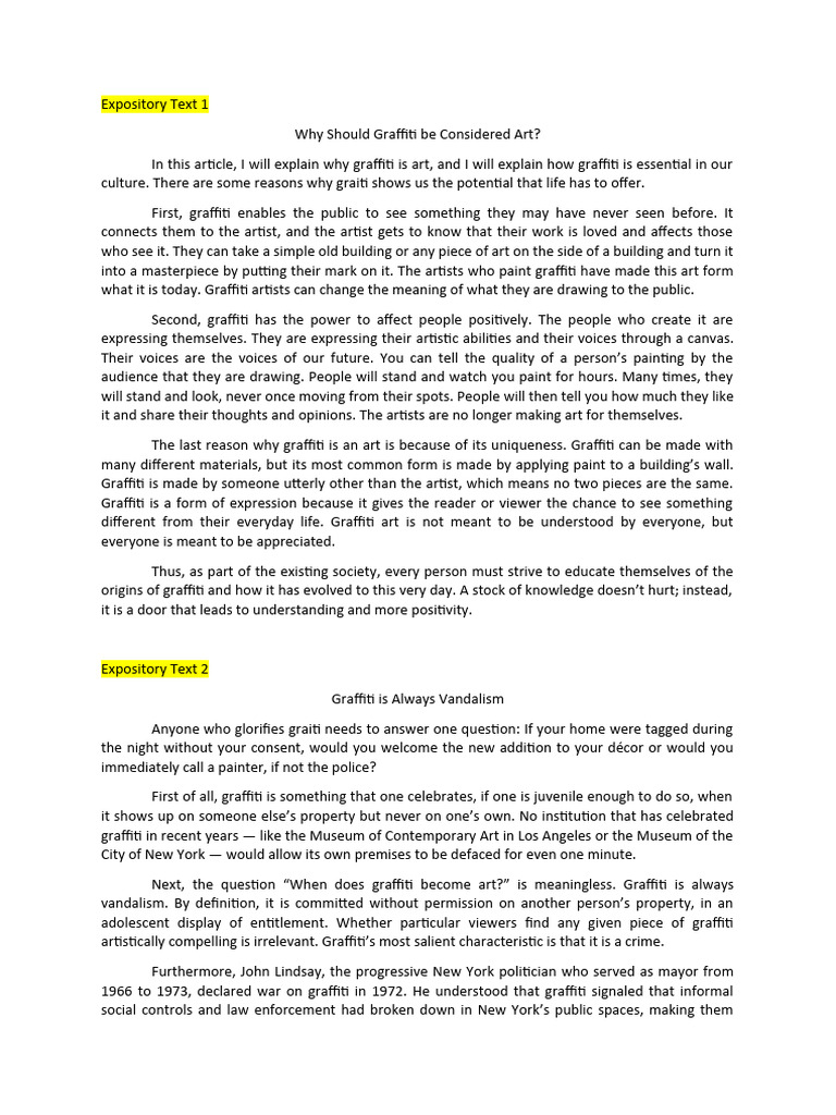 origins of graffiti and how it has evolved to this very day. A stock of knowledge doesn’t hurt; instead,