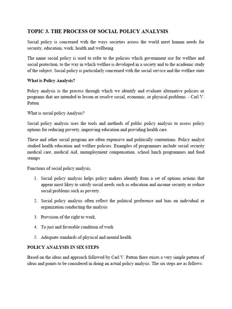 THE PROCESS OF SOCIAL POLICY ANALYSIS