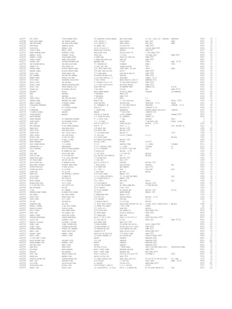 HLL2943779 BOLA LAXMIDEVI RAO BOLA BABU RAO C/O SRI B BABU RAO FLAT NO 4 VIBHA CO OP HSG SOC LTD BHAKTI MARG 73/1 ERANDAWANA PUNE 4110041 5000 1