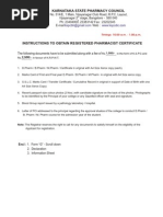 1. Application form duly filled in by the APPLICANT in his neat legible hand. Four recent, passport size, front pose identical Photographs (3.5cmx4.5cm) One of those may be used for identity slip. 2. First and Second year Original Mark list issued by the concerned examining body and Photo Copy of the same. 3. Original 500 hours Practical Training Certificate duly signed by the Principal of the Concerned pharmacy institute. 4. S.S.C. passing certificate and Pharmacy College Leaving Certificate in original and photo copy of the same. 5. Copy of the proof of the residence in Maharashtra State (ration card/domicile certificate/election card duly attested.) 6. Identity slip attested by Principal/ Gazetted Officer/Officer of Equivalent rank of this state. 7. For the applicants having diploma from other states should submit original diploma certificate and two photo copies of the same attested by the Principal of the Pharmacy Institution. 1.
