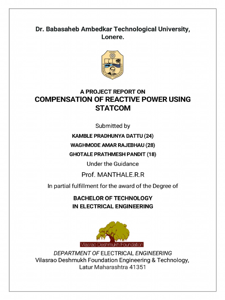 fulfillment of Degree of Bachelor of Engineering in Electrical Dr.
