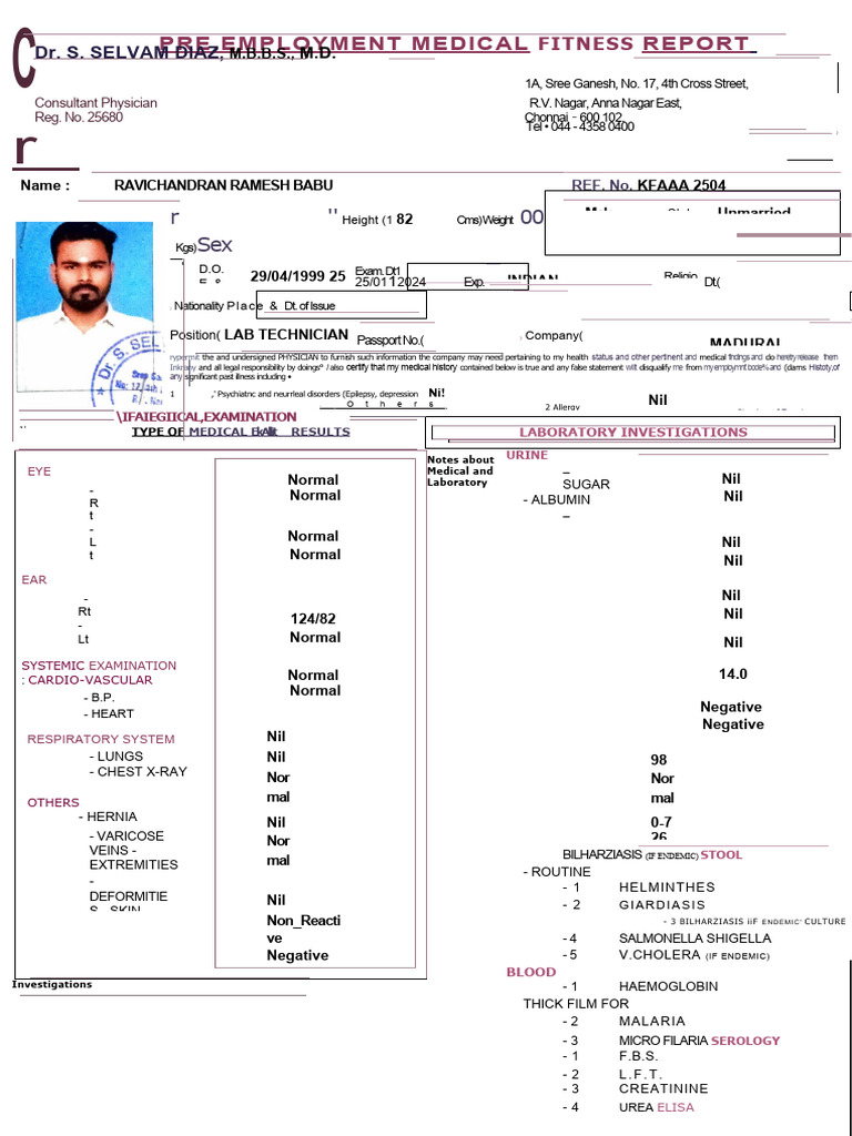 Mooned above is the Medical Report for ( RAVICHANDRAN