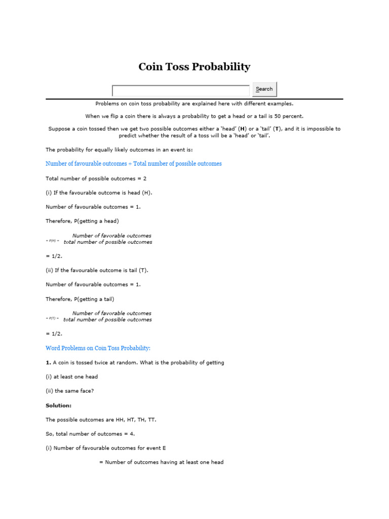Suppose a coin tossed then we get two possible outcomes either a ‘head’ (H) or a ‘tail’ (T), and it is impossible to