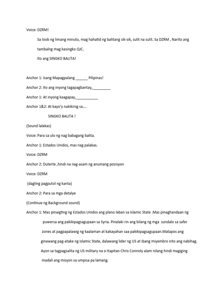 Anchor 1: Iyan po ang limang minutong pagbabalita mula sa istasyong di lamang naghahatid ng balitang