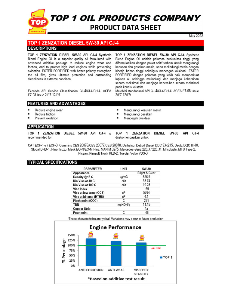 TOP 1 ZENZATION DIESEL 5W-30 API CJ-4 is TOP 1 ZENZATION DIESEL 5W-30 API CJ-4