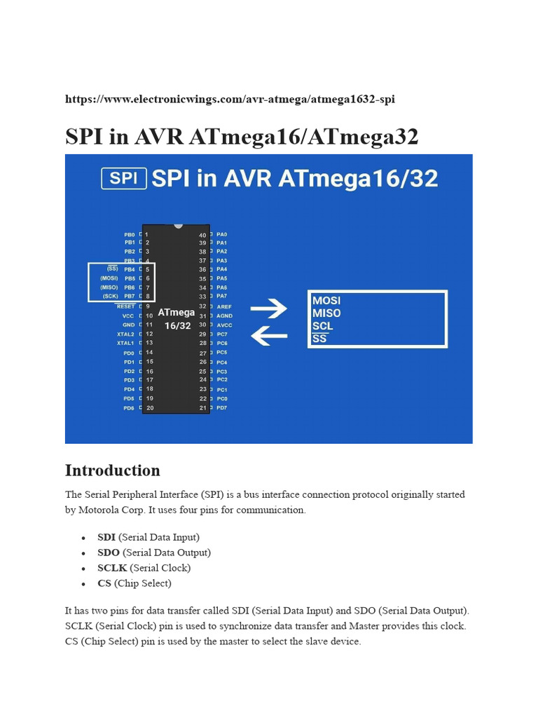It has two pins for data transfer called SDI (Serial Data Input) and SDO (Serial Data Output).