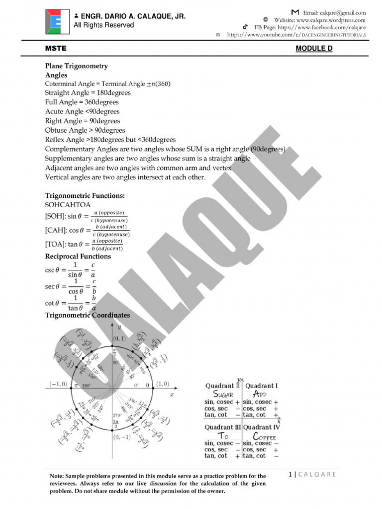 problem. Do not share module without the permission of the owner.E| 2 ENGR. DARIO A. CALAQUE, JR. a Br oliiaatinaie amy