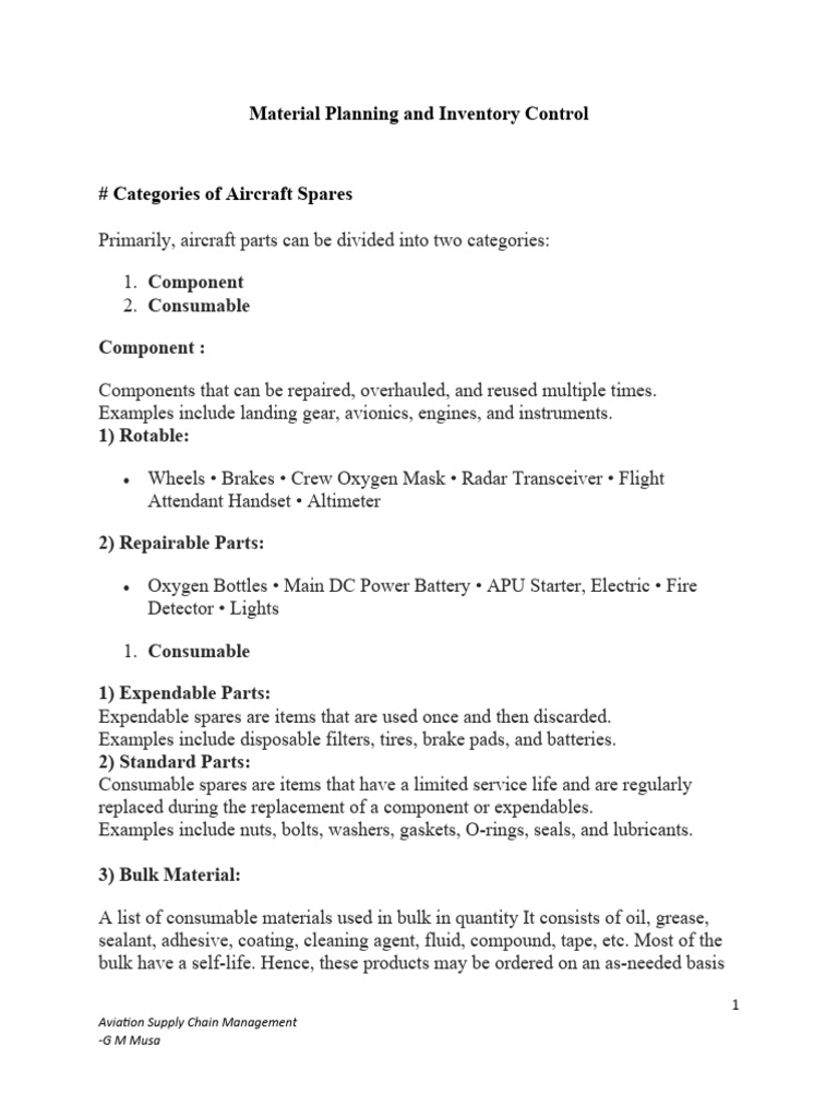Material Planning and Inventory Control