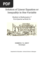 Topic: SOLVING LINEAR EQUATION IN ONE VARIABLE