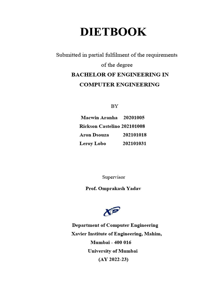 This Mini Project entitled “Dietbook” by Macwin Aranha (5) ,