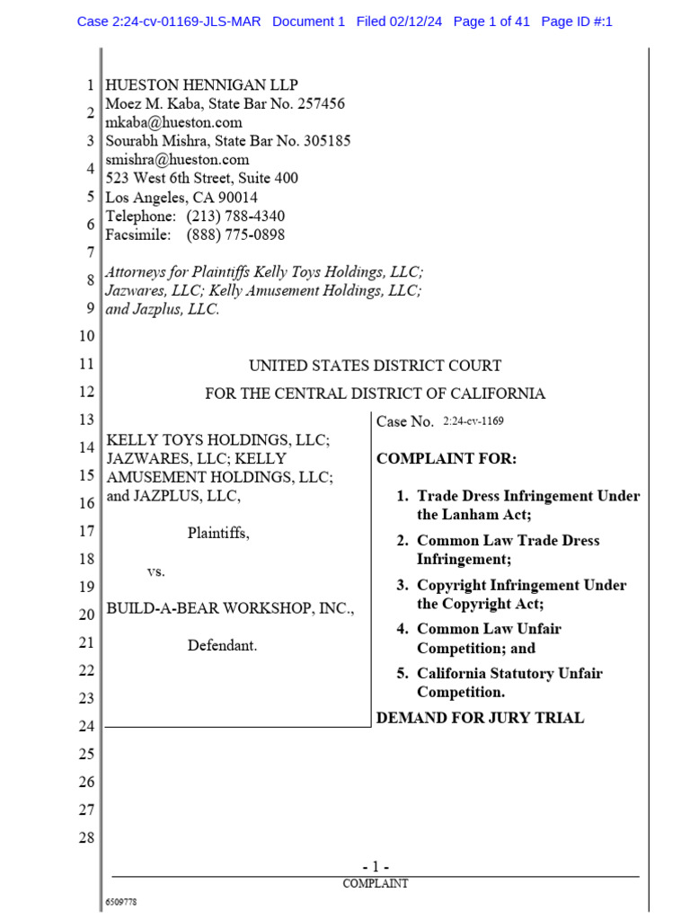 12 15. Kelly Toys Holdings, LLC provides the rights to the remaining plaintiffs,