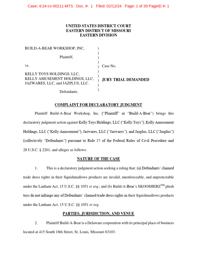 law, having filed a lawsuit against Build-A-Bear in Broward County, Florida, on January 29, 2024.