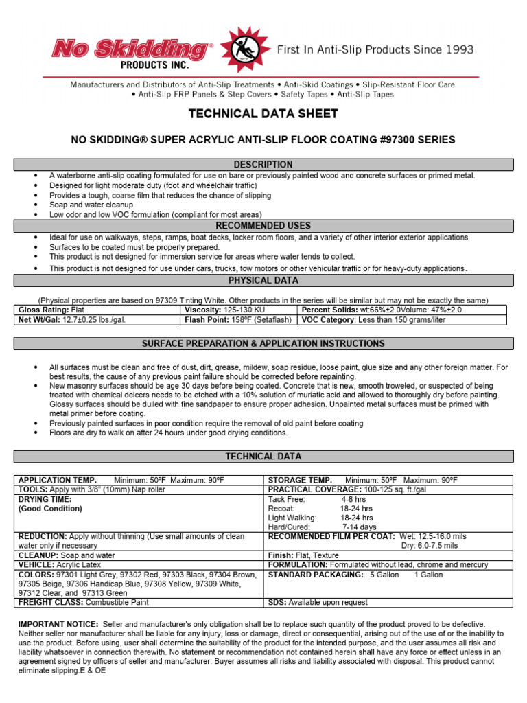 NO SKIDDING® SUPER ACRYLIC ANTI-SLIP FLOOR COATING #97300 SERIES