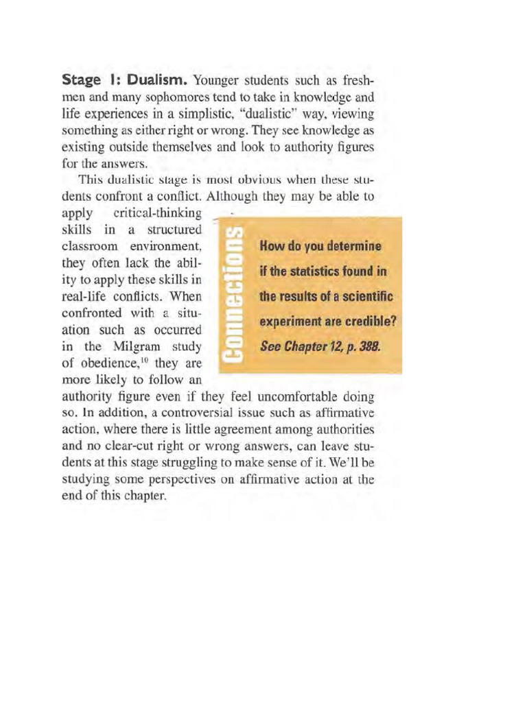 Stage |: Dualism. Younger students such as fresh-