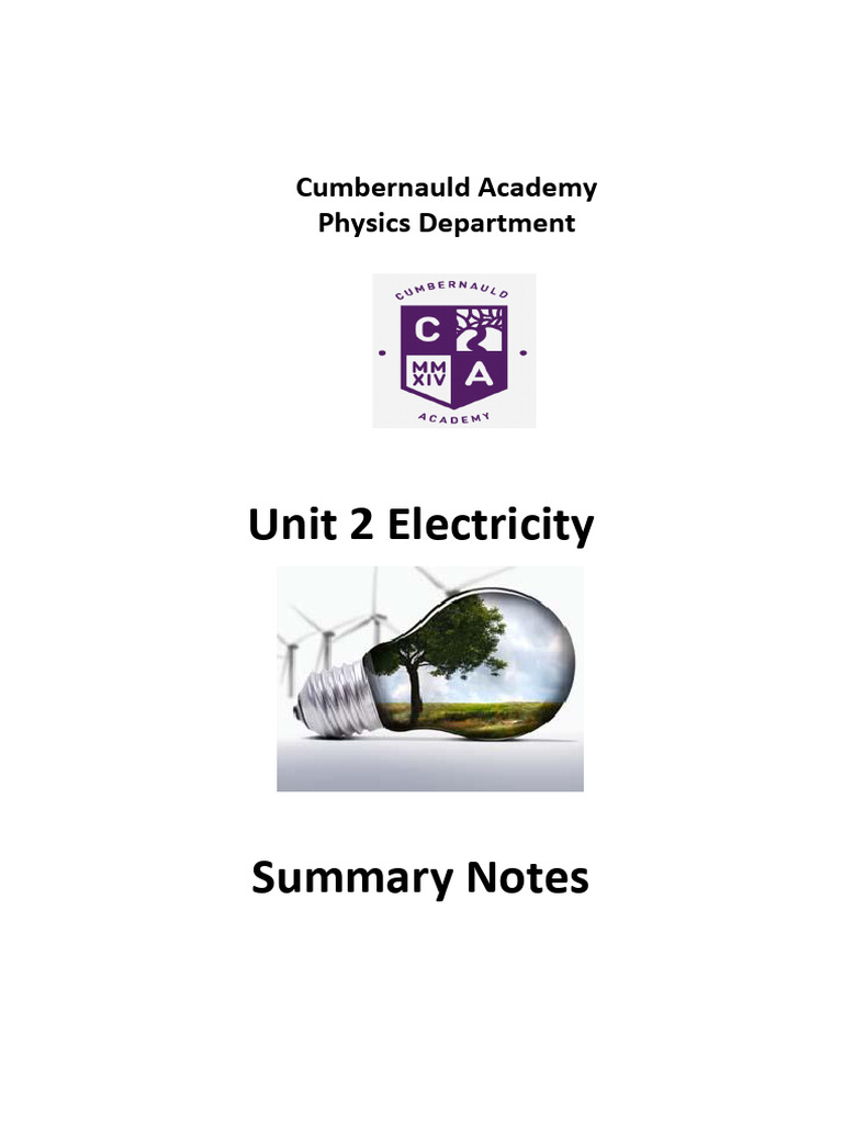 Electricity Unit 2 Summary Notes
