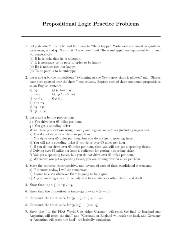 Propositional Logic Practice Problems