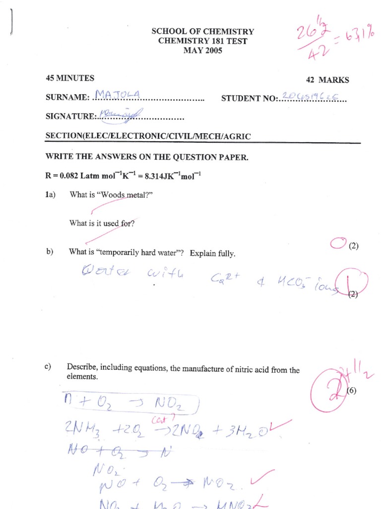 CHEMISTRY 181 TEST