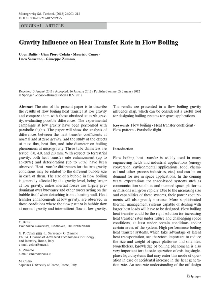 Zero-G. We also express our gratitude to Novespace and more Ohta, H.: Heat transfer mechanisms in microgravity flow boiling.