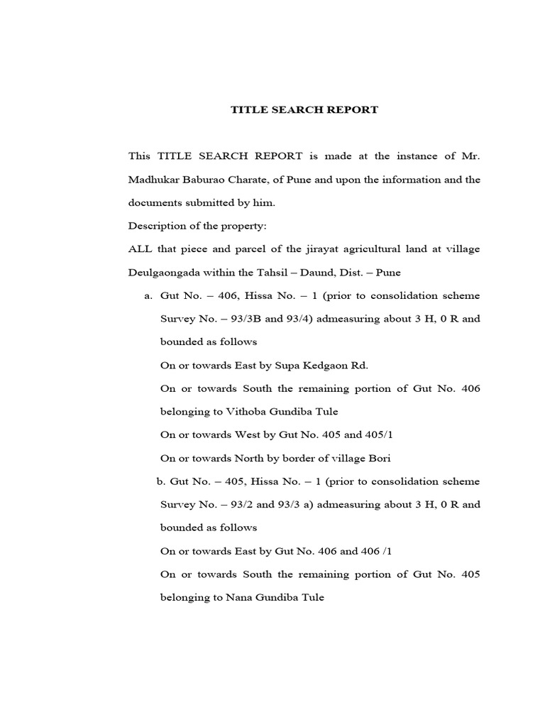 This TITLE SEARCH REPORT is made at the instance of Mr.