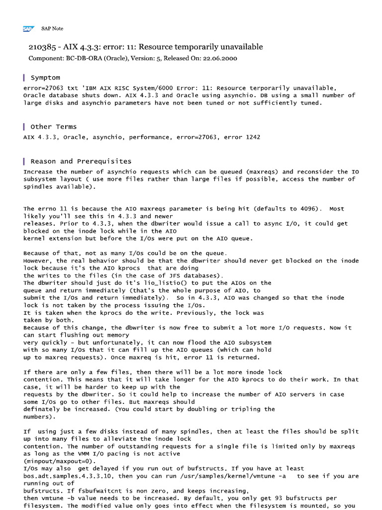 error=27063 txt 'IBM AIX RISC System/6000 Error: 11: Resource terporarily unavailable,