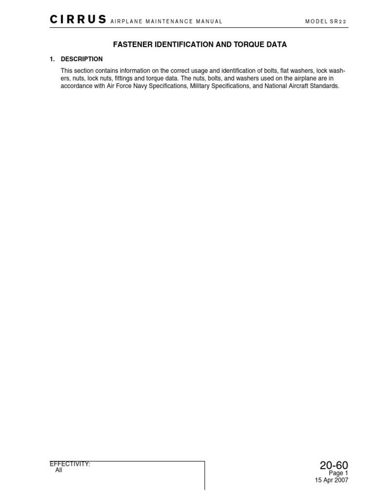 CIRRUS AIRPLANE MAINTENANCE MANUAL MODEL SR22