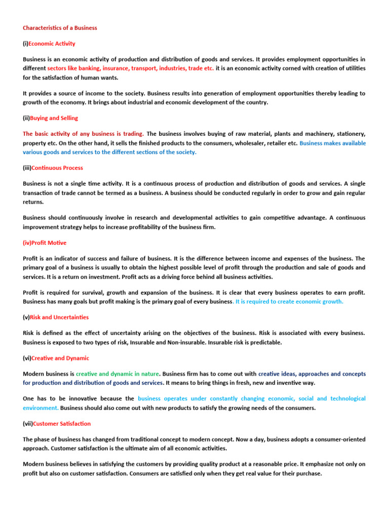 Characteristics of a Business