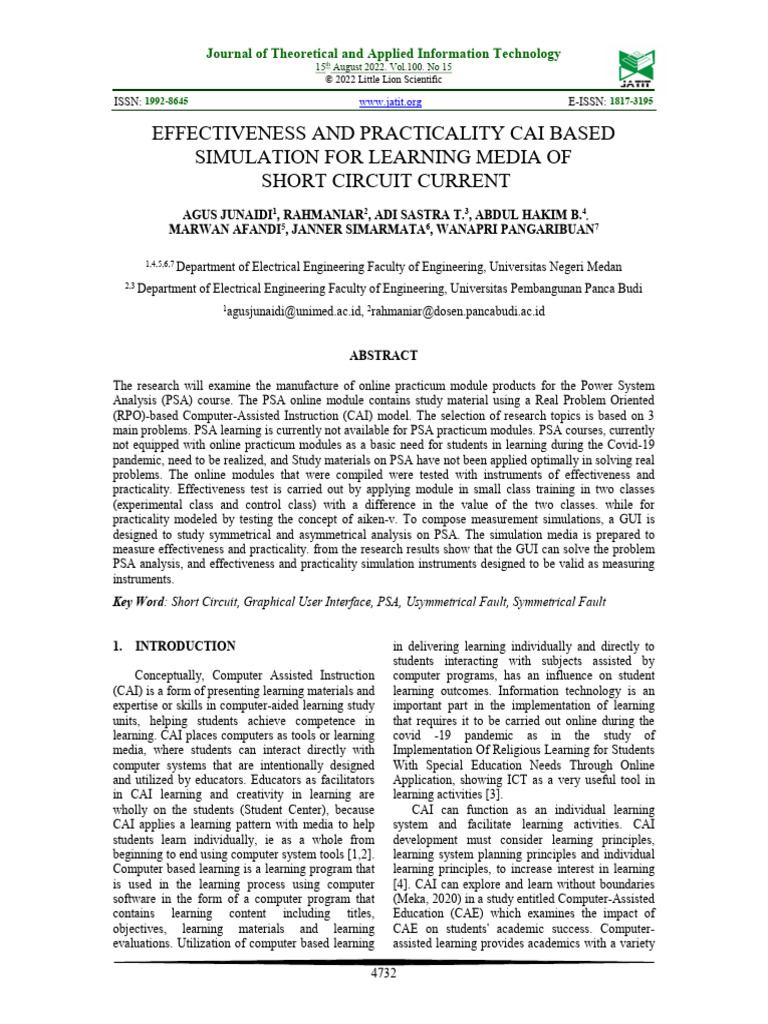Pembelajaran Computer Assisted Instruction Power Systems”, Journal of Theoretical and