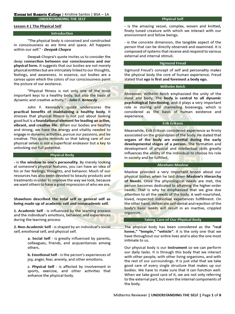 Midterms Reviewer | UNDERSTANDING THE SELF | Page 1 of 8