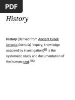 History (derived from Ancient Greek ἱστορία (historía) 'inquiry; knowledge acquired by investigation')[1] is the