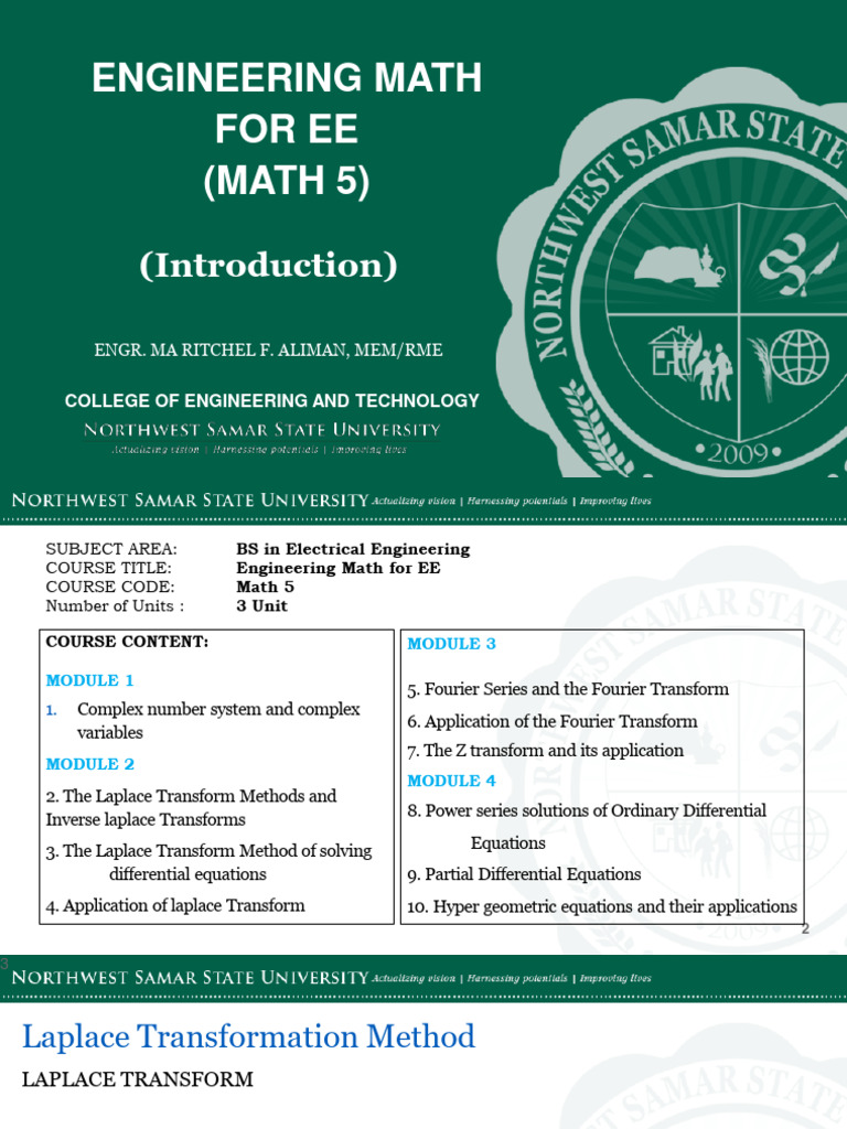 COURSE TITLE: Engineering Math for EE