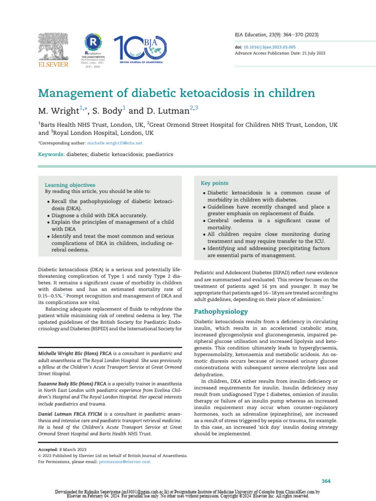 development of DKA. In an international study of more than whilst minimising the risk of cerebral oedema. Historically,