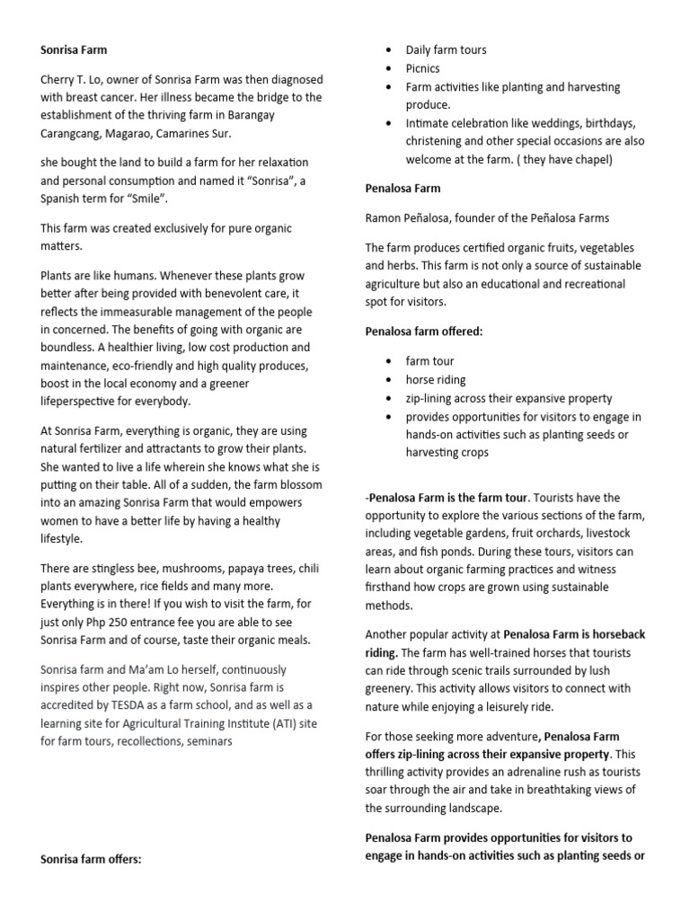 just a typical tourist spot but also an educational hub related to agriculture specifically. The examples