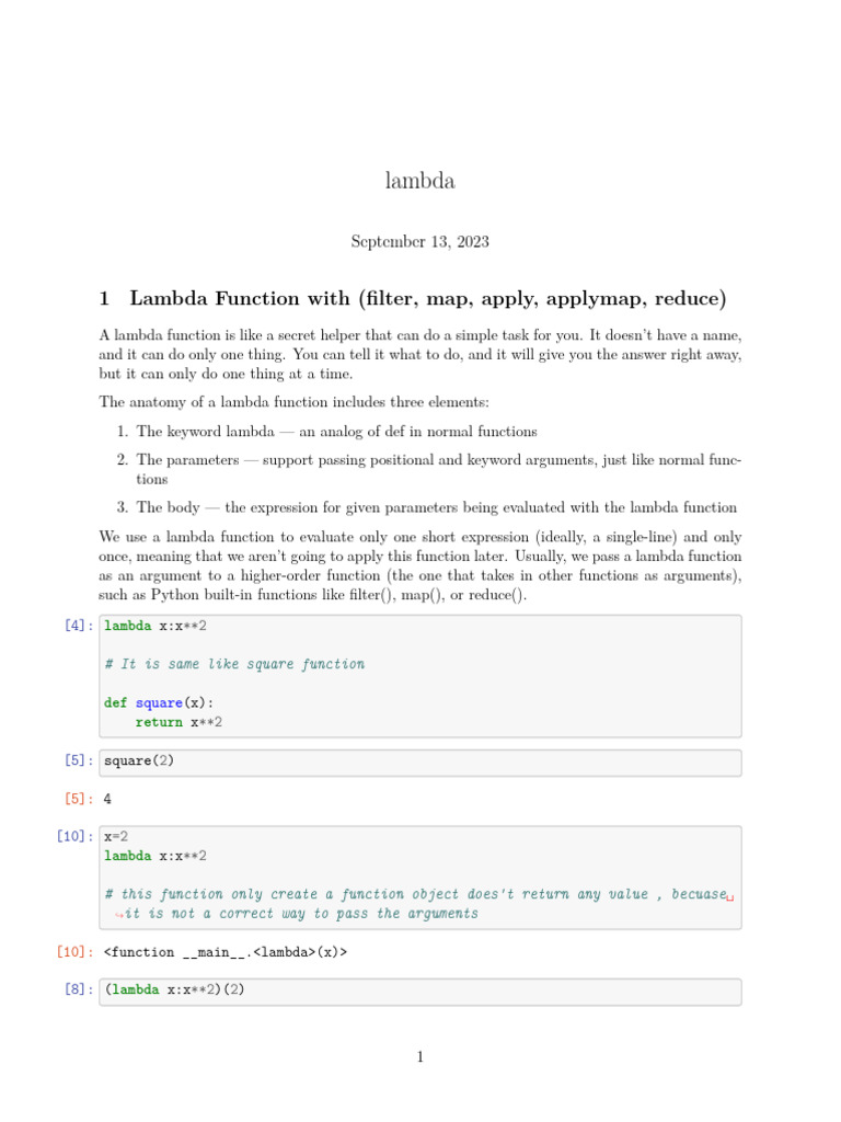 1. The keyword lambda — an analog of def in normal functions