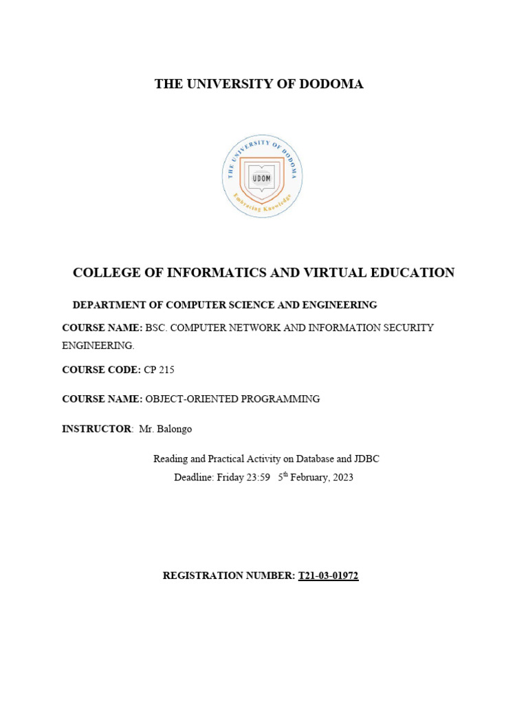 Asked to read on Java Database Connectivity (JDBC) and to perform the following task: - (asked