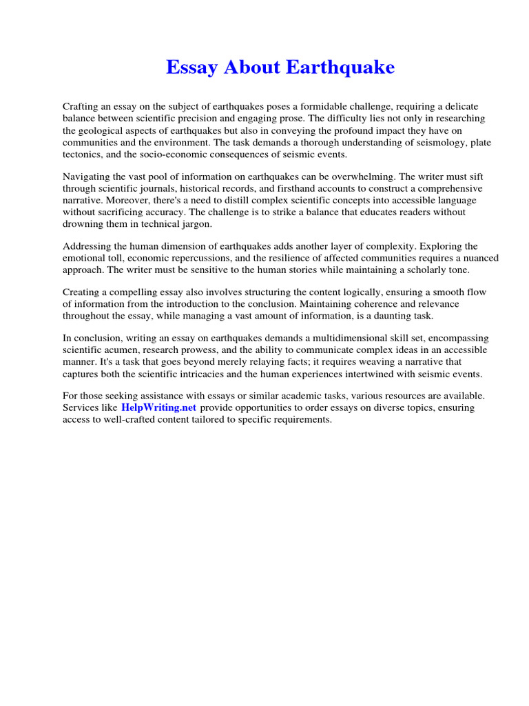 Crafting an essay on the subject of earthquakes poses a formidable challenge, requiring a delicate