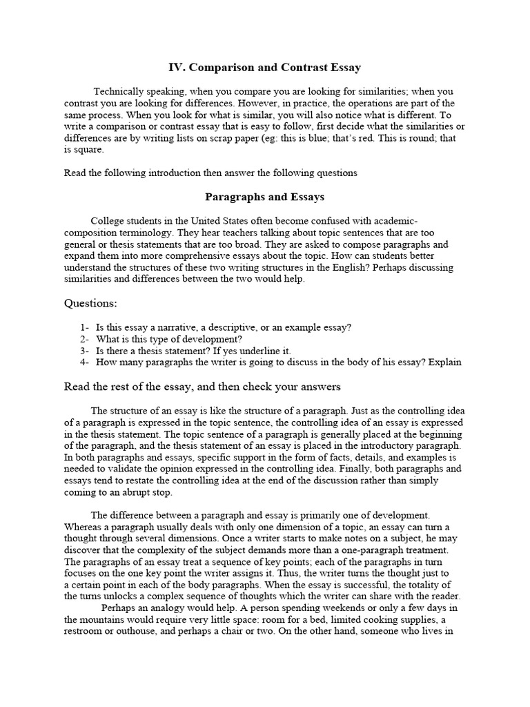 what is different. Comparing a paragraph with the essay requires from us to look for the
