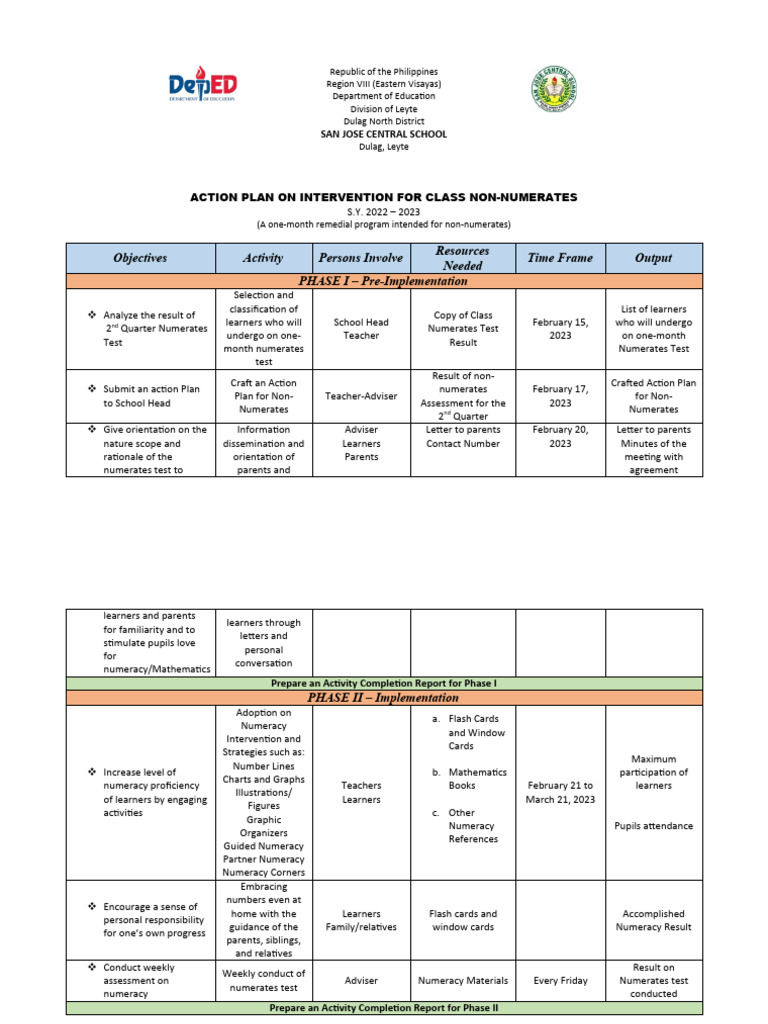 ACTION PLAN ON INTERVENTION FOR CLASS NON-NUMERATES