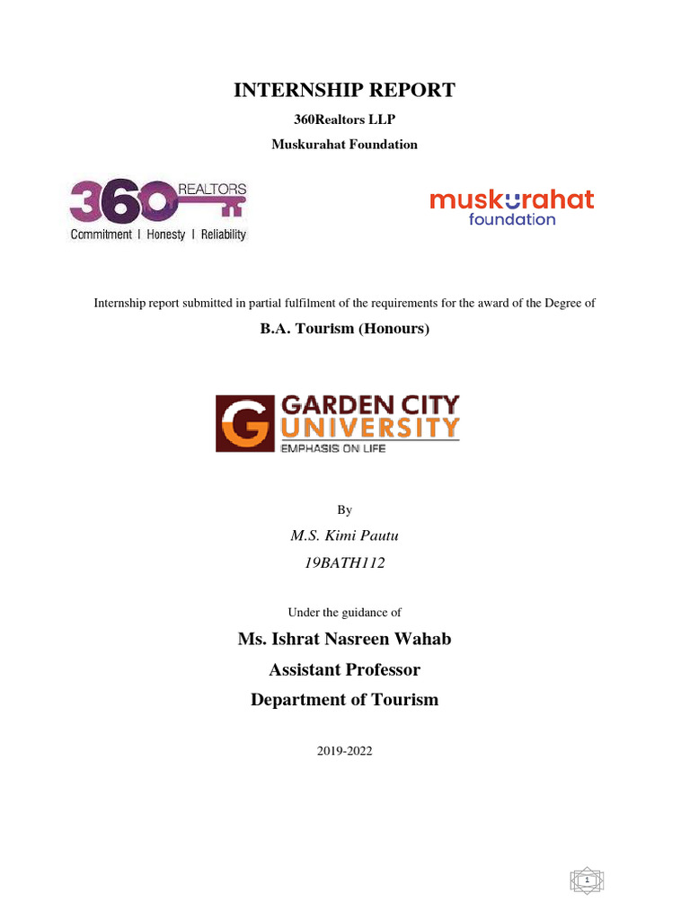 in Tourism (Honours) of Garden City University. The report has not been submitted earlier to this