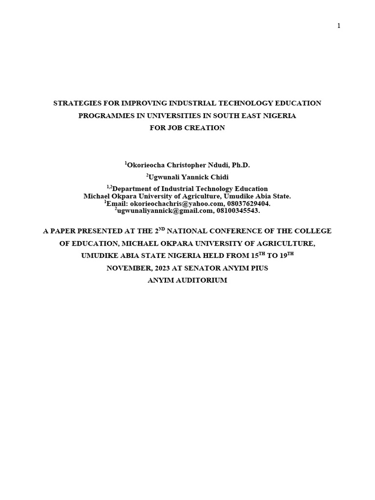 Keywords: Industrial Technology Education, Strategies, Universities, South-East Nigeria