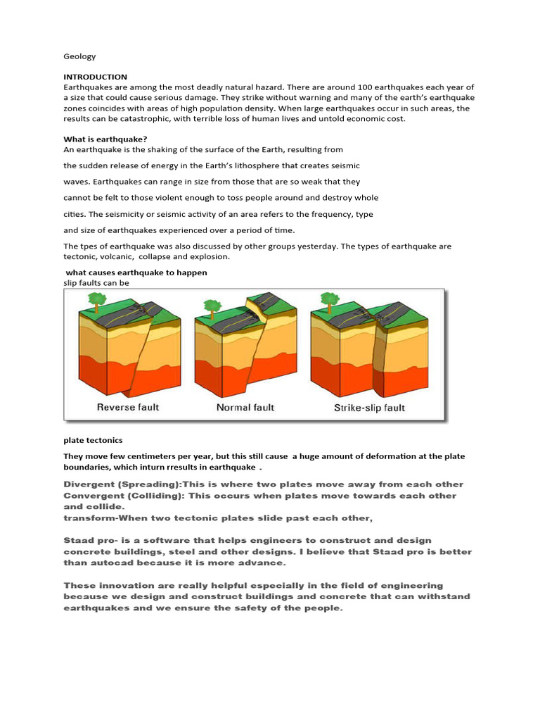 The tpes of earthquake was also discussed by other groups yesterday. The types of earthquake are