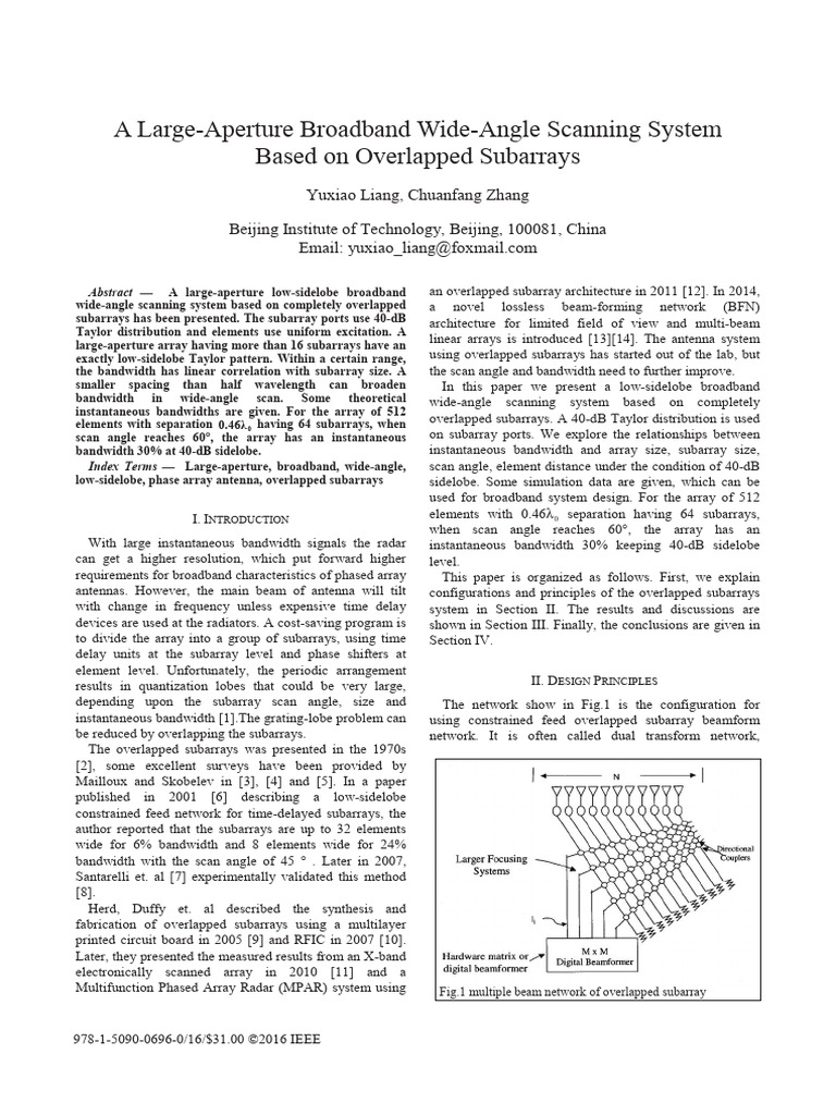 Abstract — A large-aperture low-sidelobe broadband an overlapped subarray architecture in 2011 [12]. In 2014,