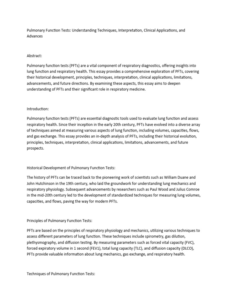 lung function and respiratory health. This essay provides a comprehensive exploration of PFTs, covering
