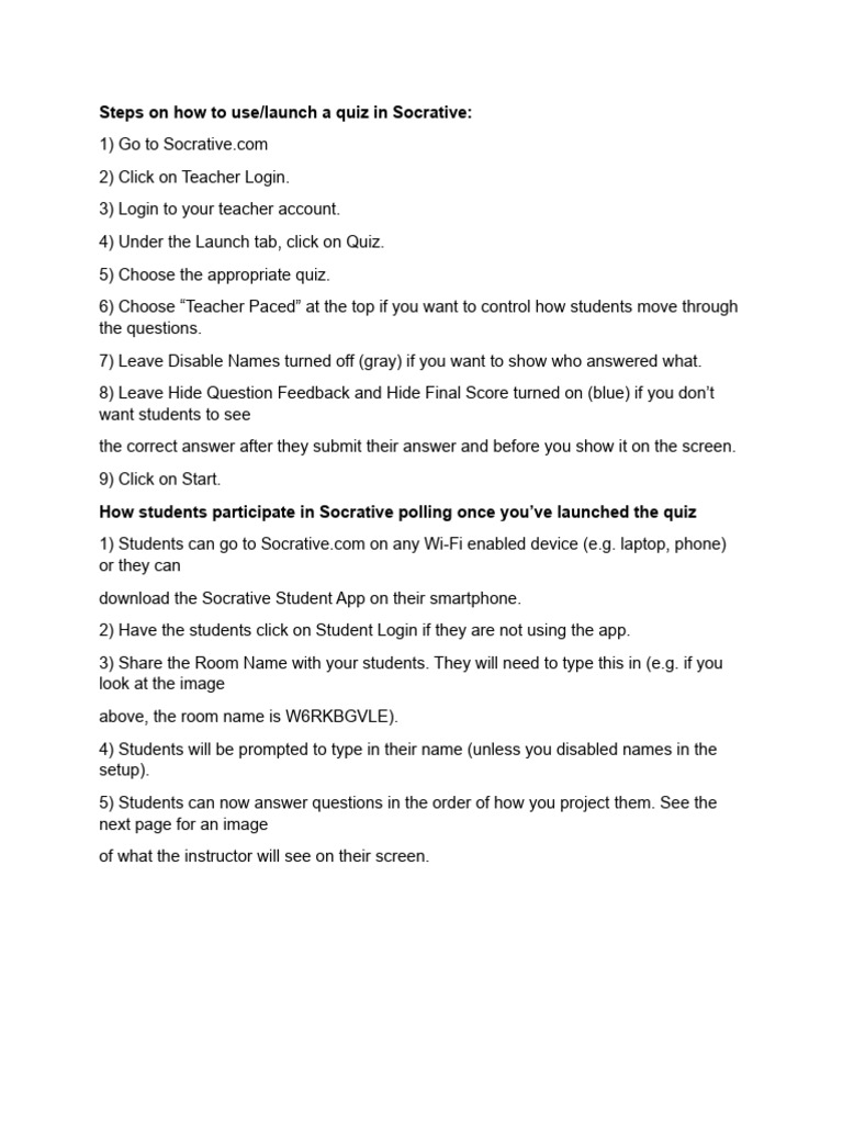 Steps on how to use/launch a quiz in Socrative: