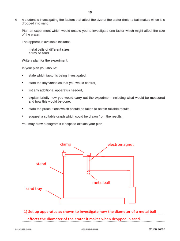 4 A student is investigating the factors that affect the size of the crater (hole) a ball makes when it is