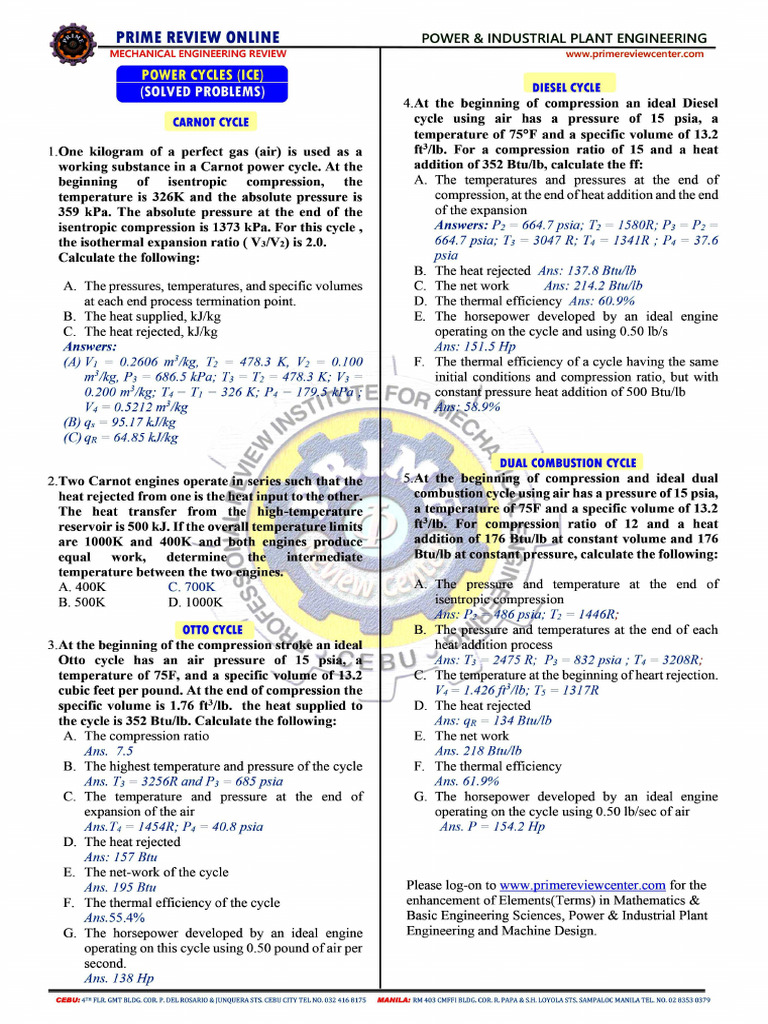 MECHANICAL ENGINEERING REVIEW PRIME’S SUPPLEMENTARY ENHANCERS (POWER CYCLES/ICE)