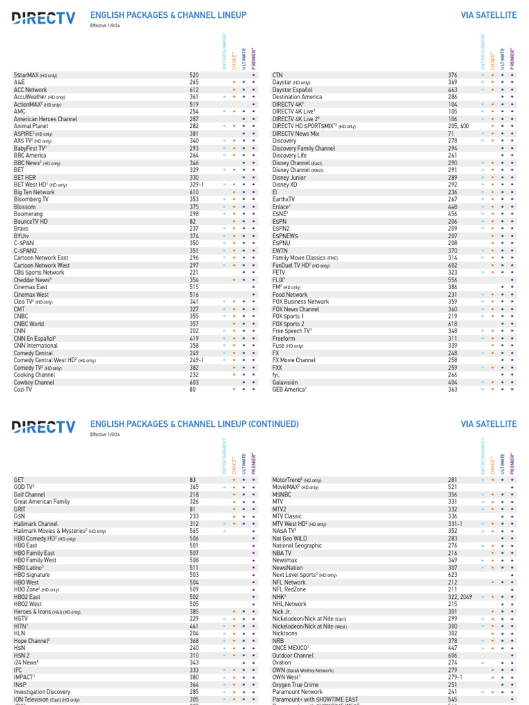 ActionMAX2 (HD only) 519 • DIRECTV 4K9 104 • • • •