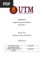Matlab Codingclear all % to clear recent datas clc p=input('ENTER THE RANGE\n'); % input value of time range from user . h=input('ENTER THE STEP SIZE\n');% );% input valueof step size from user n=p/h; % define the no of steps k1=zeros(1,n); % space allotment k2=zeros(1,n); % space allotment k3=zeros(1,n); % space allotment k4=zeros(1,n); % space allotment u=zeros(1,n); % space allotment x=zeros(1,n); % space allotment z1=zeros(1,n); m=zeros(1,n); R=input('ENTER THE RADIUS OF THE SPHERE\n');% input value of radius from user. Rho=input('ENTER THE DENSITY OF THE FLUID\n');% input value of density from user. Cd=input('ENTER THE VALUE OF DRAG CO-EFFICIENT\n');% input value of drag cofficient from user. M=input('ENTER THE MASS OF THE SPHERE\n');% input value of mass from user. V=input('ENTER THE VELOCITY OF THE FLUID\n(should be less than 10)');% input value of velocity of fluid from user. u(1)=input('ENTER THE INITIAL VELOCITY OF THE SPHERE(should be less than velocity of fluid)\n');% input value of initial velocity from user. x(1)=input('ENTER THE INITIAL DISPLACEMENT OF THE SPHERE\n');% input value of initial displacement from user. for i=1:n-1 % using rung kutta method order of fourth. k1(i)=(Rho*Cd*pi*R*R/(2*M))*(V-u(i))^2; k2(i)=(Rho*Cd*pi*R*R/(2*M))*(V-(u(i)+h*(k1(i)/2)))^2; k3(i)=(Rho*Cd*pi*R*R/(2*M))*(V-(u(i)+h*(k2(i)/2)))^2; k4(i)=(Rho*Cd*pi*R*R/(2*M))*(V-(u(i)+h*k3(i)))^2; u(i+1)=u(i)+h*(k1(i)+2*k2(i)+2*k3(i)+k4(i))/6; % velocity at time t+h x(i+1)=x(i)+h*u(i); % distance at time t=h end z=0:n-1; t=h*z; ue=zeros(1,n); xe=zeros(1,n); C=(1/(V-u(1))); for i=1:n % velocity using numerical integration ue(i)= V-(1/((Rho*Cd*pi*R*R/(2*M))*(t(i))+C)); % distance covered using numerical integration xe(i)=(V*t(i)log((Rho*Cd*pi*R*R/(2*M))*(t(i))+1)/(Rho*Cd*pi*R*R/(2*M)))+x(1)+log(C)/Rho* Cd*pi*R*R/(2*M); end er=zeros(1,n); for i=1:n