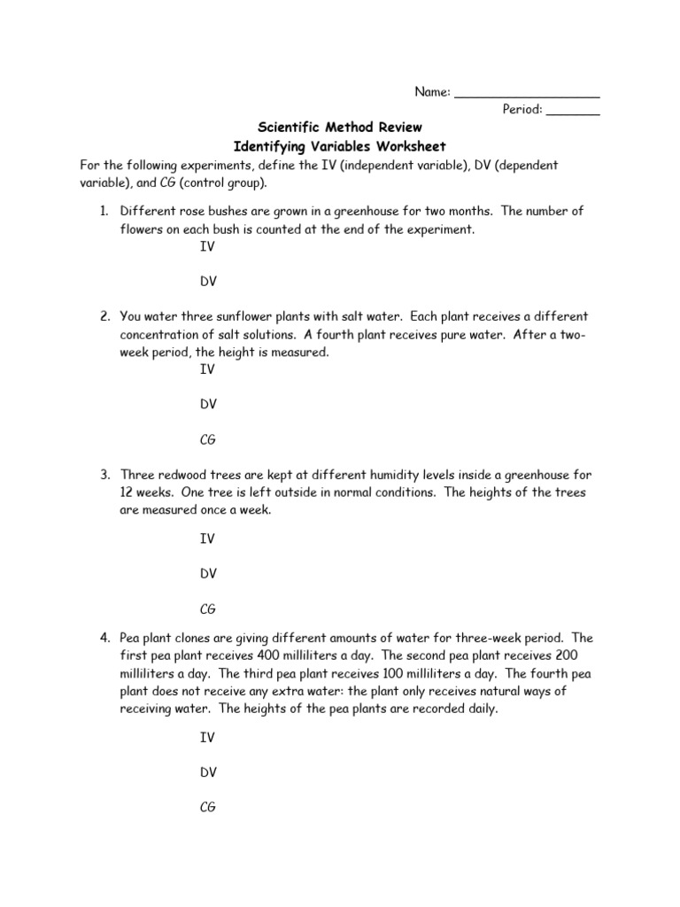 Identifying Variables Worksheet