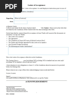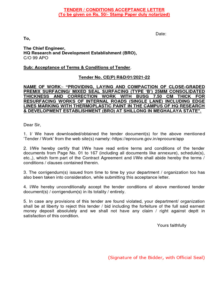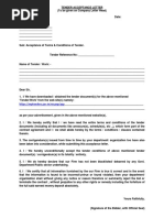 TENDER / CONDITIONS ACCEPTANCE LETTER